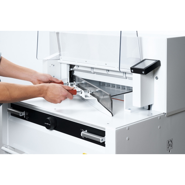 - Электронный потенциометр для ручного позиционирования заднего упора с плавной регулировкой скорости (от очень медленной до очень быстрой).