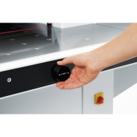 - Регулировочная рукоятка для плавного регулирования давления прижима (мин. 200 / макс. 1100 daN) и отображение значений на манометре.