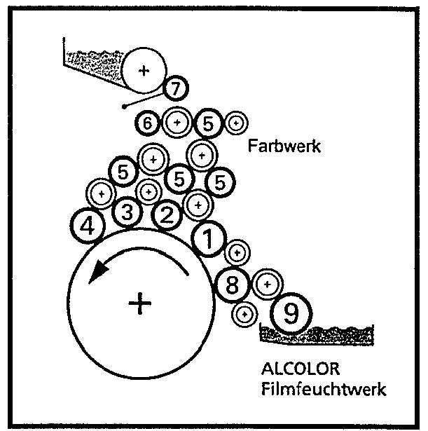 5. Система увлажнения: накатной вал (номер 8)