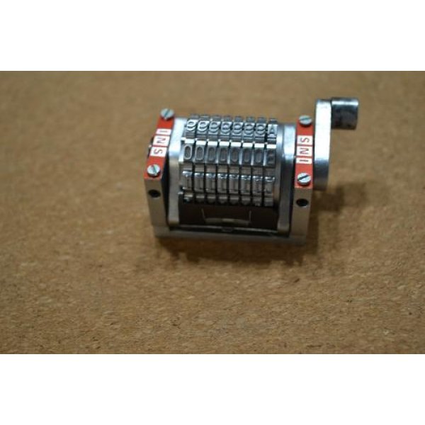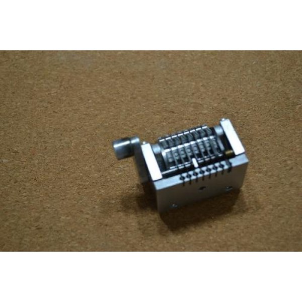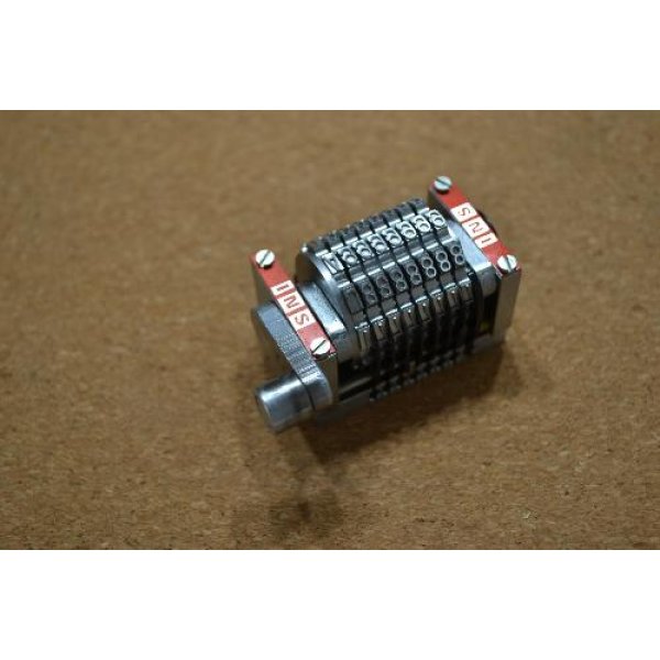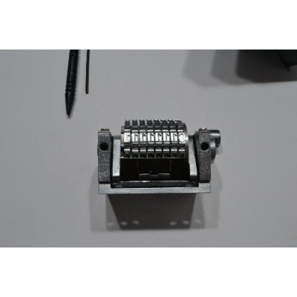 8 digit numbering head (seven digits + letter) with return spring. Model Zacares R 420 SF. Digit size No. 3/16 (h=4.76mm). Font Gotik Forward.